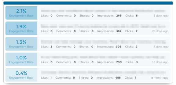 For example, “highest engagement updates” helps you understand the type of content that best resonates with your audience. This is calculated with the following formula: Engagement Rate = (Likes + Comments + Shares + Clicks) ÷ Impressions.
